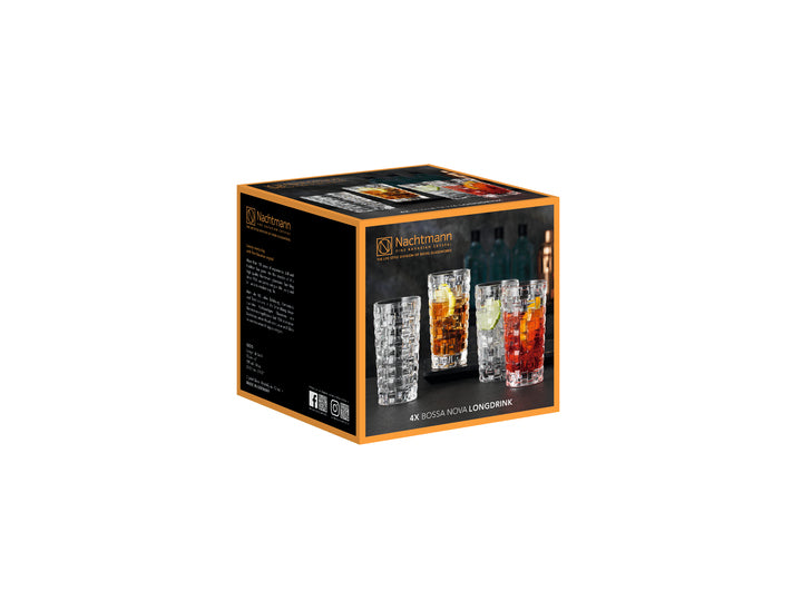This Bossa Nova Longdrink 4 piece set by Nachtmann, is ideal for enjoying longdrinks, mix-drinks or non-alcoholic beverages. These brilliant glasses add sparkle to every day as well as festive table decorations.